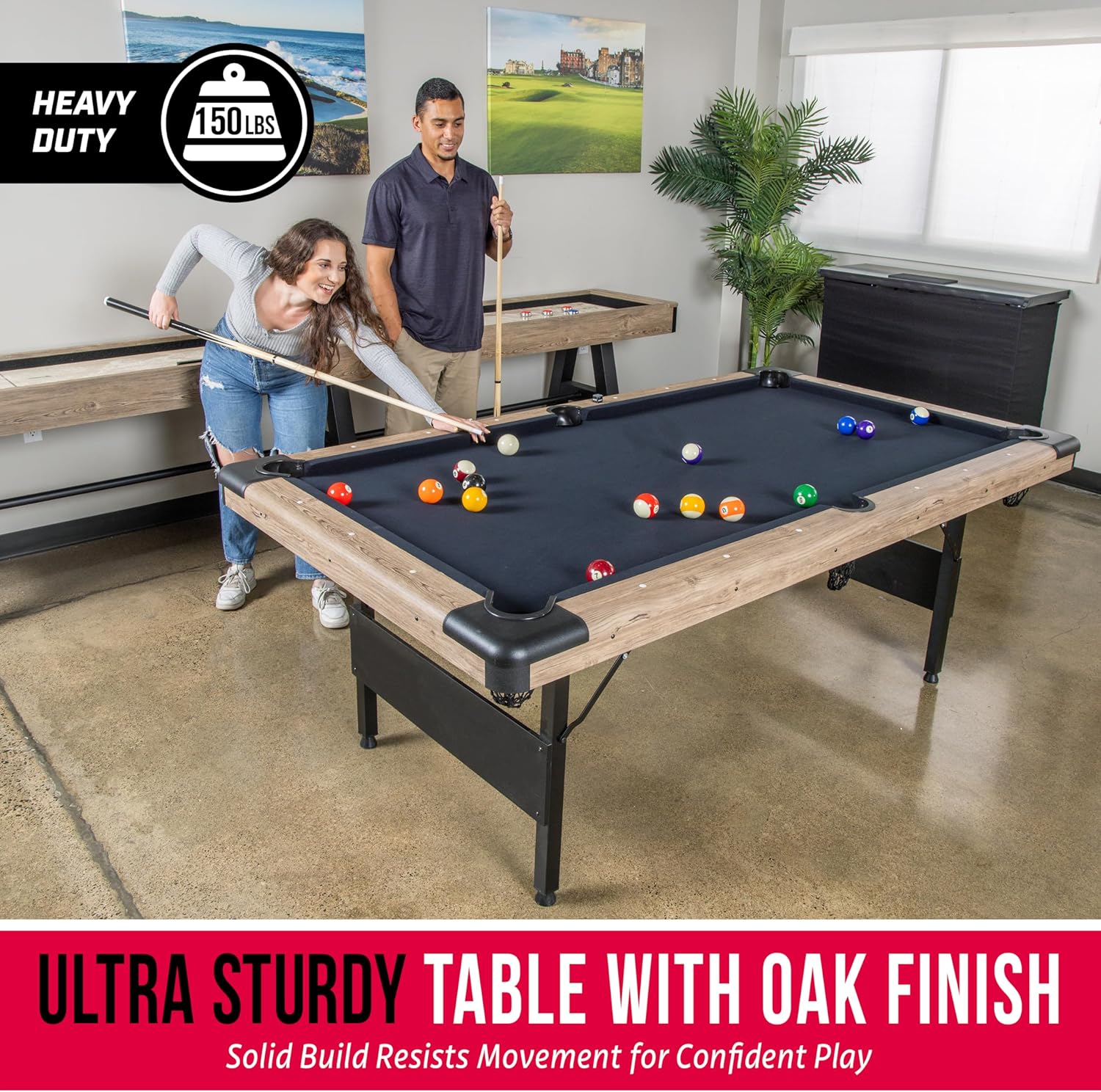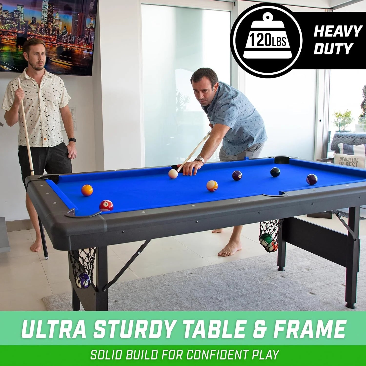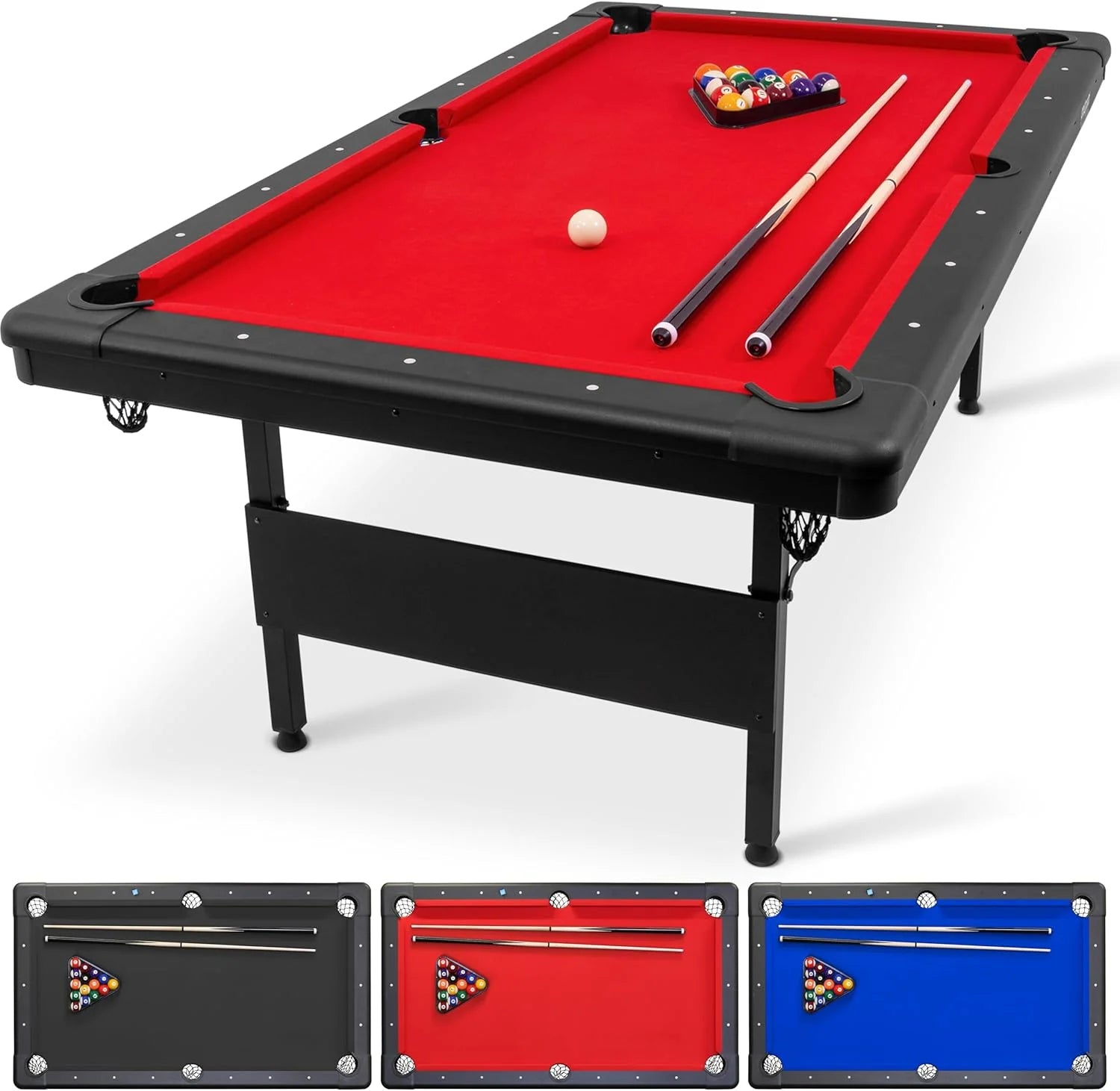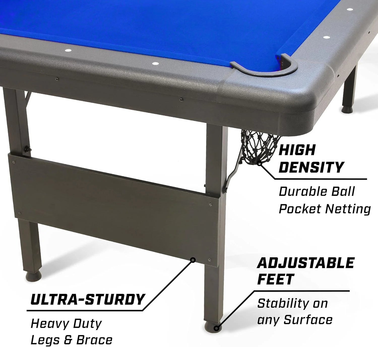 GoSports 6, 7, or 8 ft Billiards Tables - No Assembly, Choose Your Color - Portable Pool Table Includes Full Set of Balls, 2 Cue Sticks, Chalk and Felt Brush
